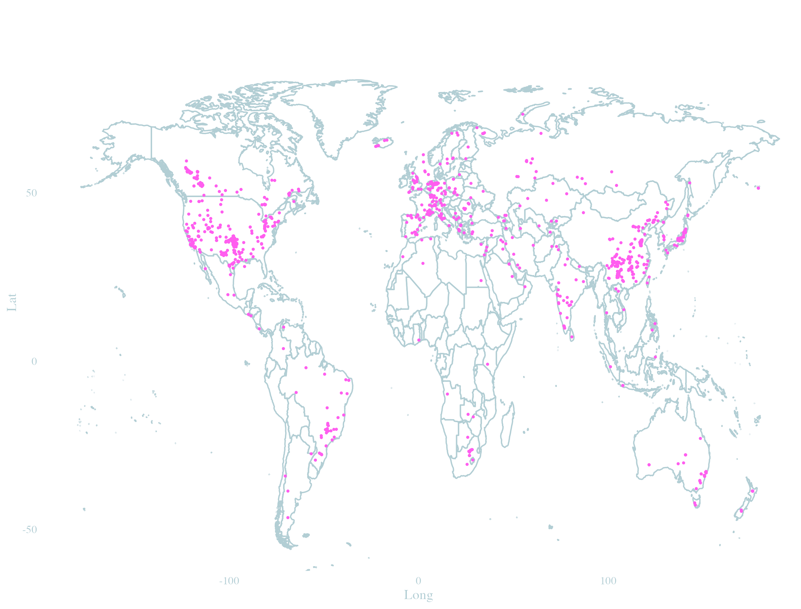 A variety of human activities have been suggested to have induced seismicity. As of January 2025, the following map depicts human-induced earthquakes (the pink dots), as recognized by official standards.