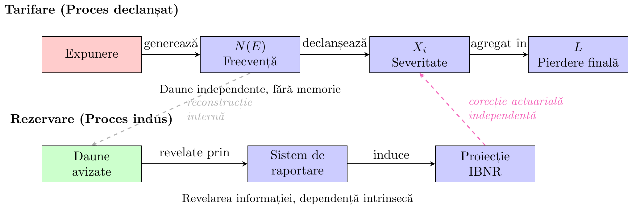 Aceasta explică o inconsistență-cheie din practica standard: aplicarea logicii de tarifare (declanșată) la probleme de rezervare (induse). Estimarea IBNR pe segmente este adesea justificată prin granularitate mai mare. Structural însă: segmentarea taie informația prin segmentare însăși.